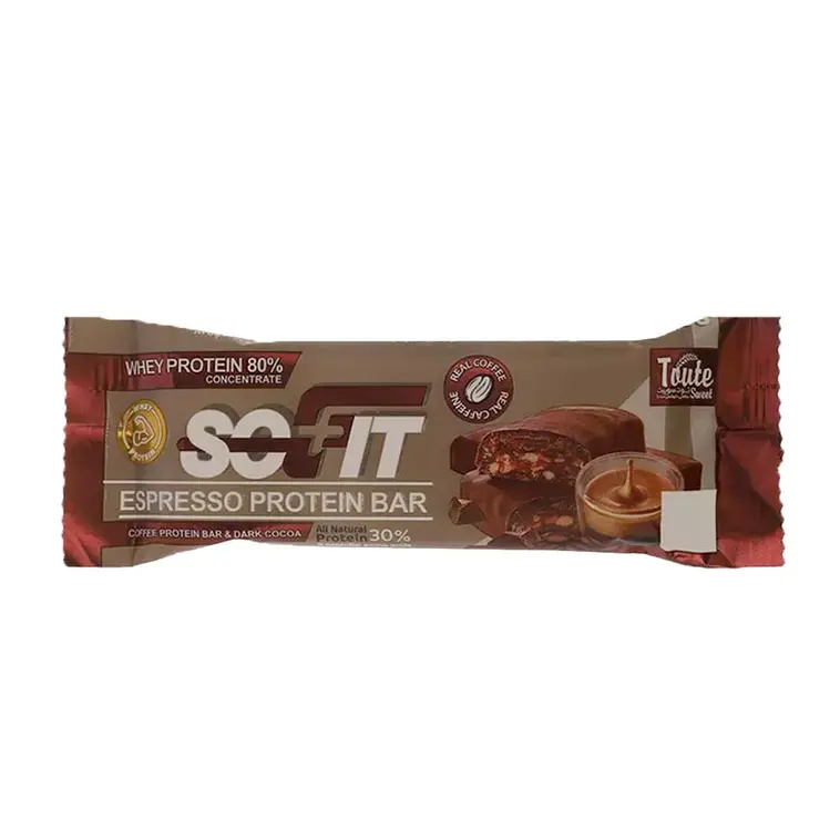پروتئین بار اسپرسو سوفیت 45 گرمی یک میانوعده کاربردی و مدرن برای افرادی است که بهدنبال ترکیب انرژی، پروتئین و طعم قوی قهوه در طول روز هستند.