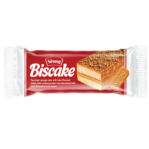 کیک اسفنجی دولایه کرم لوتوس روکش شکلات بیسکیک سیرنگ